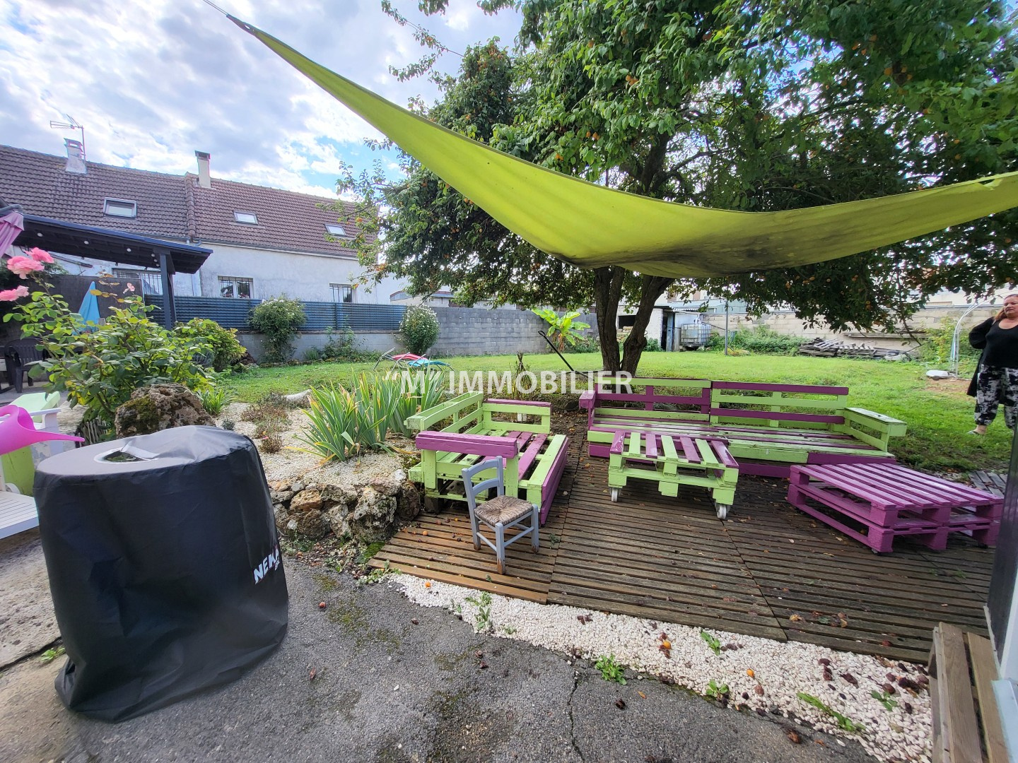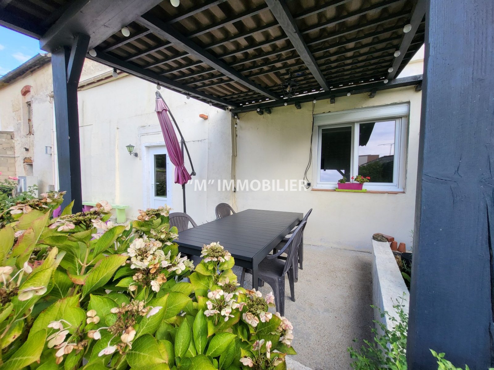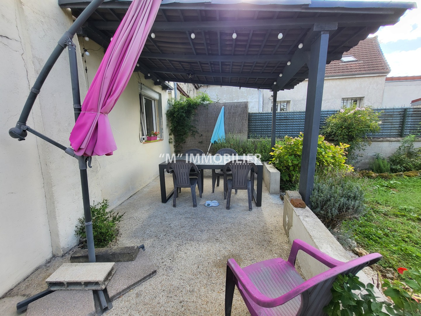 À l’extérieur, vous profiterez d’un grand jardin clos de murs à l’arrière de la maison, agrémenté d’une agréable terrasse avec pergola, idéal pour les moments en famille ou entre amis.